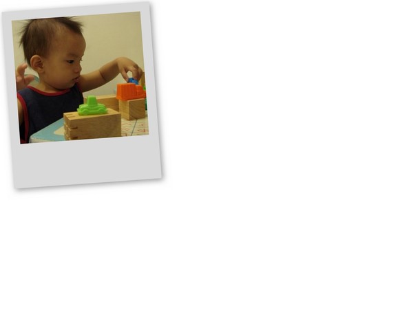 海洋動物六片裝拼圖,對你而言,似乎還太難,媽咪故意把拼圖減少1-2片,讓你填中間的位置,這樣的方式,你已經知道要找拼圖找對的位置,慢慢來,在專注力上你已經很不錯囉!