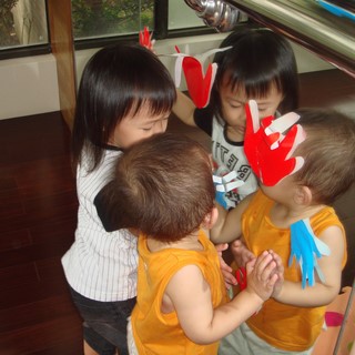 give me five這部分最好笑,孩子都喜歡往自己貼的手印重重的拍一下,且會互相觀摩對方的戰況。