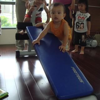 這個健身器也成了我們遊戲器材,小孩超級愛,像不像溜滑梯。
