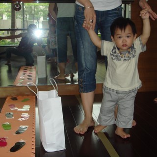 繼續堅持下來的這些媽咪卻是越挫越勇,每次活動內容在事前討論規劃上,提出更多元想法也分享更多資源及書,一步一步的延展活動主題,擴大領域除了原有的律動及兒歌,感覺我們也跟隨著孩子腳步成長,凝聚力也更加深友誼,這次活動設計就是大家共同擬定,Ethen媽咪費心安排,『我的小腳丫』就這樣誕生囉。